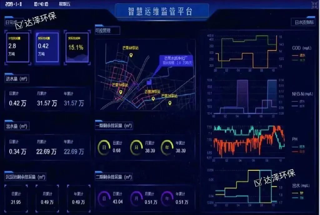 达泽环保联合河海大学共同开发出智慧水务平台运维软件,以物联网+大数据技术为核心,通过新一代信息技术与水务技术的深度融合进行污水处理综合运营管理。