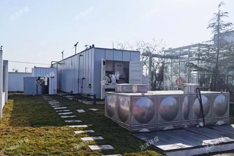 在本项目中,马坝镇中转站渗滤液处理要求无浓缩液产生,全程无二次污染,所以为保障无害化处理,达泽环保针对垃圾渗滤液采用全量化工艺,做到全程不产生浓缩液,避免浓缩液二次污染。针对渗滤液处理中产生的污泥,配备污泥压缩脱水处理系统,产生的生化污泥属于一般固废,无二次污染风险;同时污水处理过程添加非强酸强碱等安全环保的药剂,产生的物化污泥也同属于一般固废,无二次污染风险,污水、污泥处理的全过程皆满足项目无害化处理的要求。为了保障设备处理效果更稳定、安全、高效,同时满足工艺先进、运行成本低、整体布局简洁美观的需求,设备采用一体化结构,将工艺模块化高度集成,不但大大减少占地,布置简洁美观,还更加节能环保。