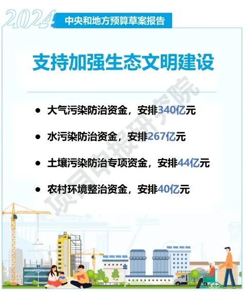 《2024年中央和地方预算草案报告》提到,关于生态环境治理,将持续深入推进污染防治攻坚。围绕污染防治重点区域、重点领域、关键环节,支持打好蓝天、碧水、净土保卫战。