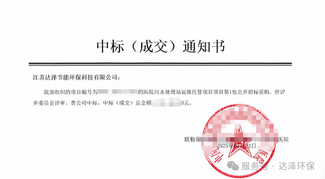 达泽环保凭借在医疗污水处理领域多年的技术积累与丰富运维经验,成功中标该院污水处理站运维项目。此次合作,达泽环保坚持以 “全流程精细化管控” 为核心,为医院构建从污水收集、处理到达标排放的全链条保障体系,助力医院在专注医疗服务的同时,筑牢生态安全与院感防控的双重防线。